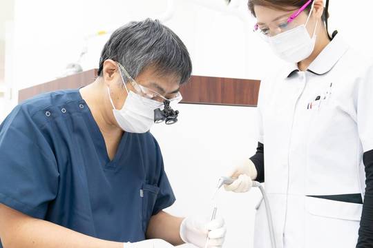 例えば、根管治療の成功率を左右する「衛生環境」に配慮。治療している歯に唾液が触れると歯の内部で細菌感染を起こす恐れがあるため、治療中に清潔な状態を保持できるかは非常に重要です。具体的には必要に応じて「Zoo(ズー)」と呼ばれる、唾液を吸引する特殊なバキュームを使用しながら根管治療を行います。
