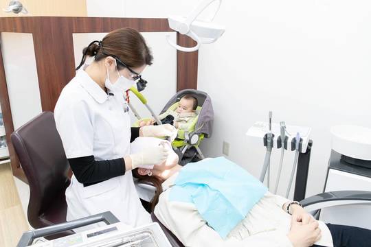 さらに広めの診療室をご用意しているため、診療台のそばにベビーカーを置いて治療やクリーニングを受けていただけます。「子供が小さいからなかなか歯医者に行けない…」と通院をためらいがちな方でも、気軽にご来院いただける環境です。