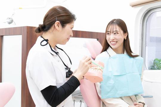 一方、歯科医院が担うべき歯周病予防・再発防止策として、当院は定期的なメインテナンスをおすすめしています。メインテナンスでは、歯科衛生士がお口の状況に合わせたケアを行います。さらにご自宅でのセルフケアや、より良い生活習慣についてのアドバイスも差し上げています。