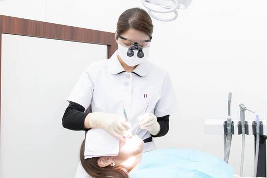 やみくもに歯石を除去するのではなく、検査結果をもとに患者さまにも治療の内容や流れをご理解いただいた上で治療を進めます。歯周基本治療の処置を担当するのは、歯科衛生士。治療の前には必要に応じて歯ぐきに表面麻酔を塗布しますので、痛みの少ない歯石除去が可能です。